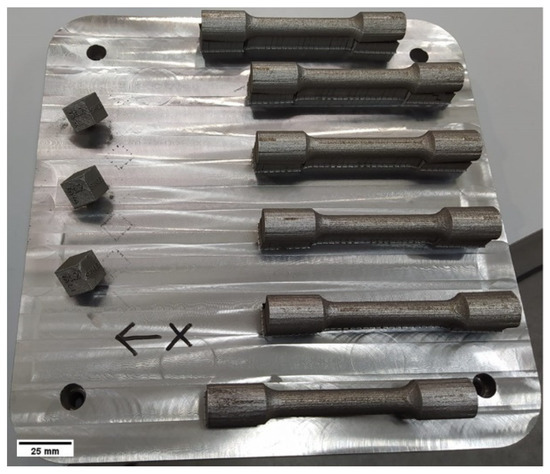 A Concept Laser M2 Cusing L-PBF machine was used to fabricate the steel specimens. A nitrogen atmosphere was used in the build chamber, and the optimal processing parameters were defined as 200 W for the laser power, 40 μm for the powder layer thickness, 70 μm and 550 mm/s for the hatching distance and the laser scanning velocity, respectively, according to a previous investigation [