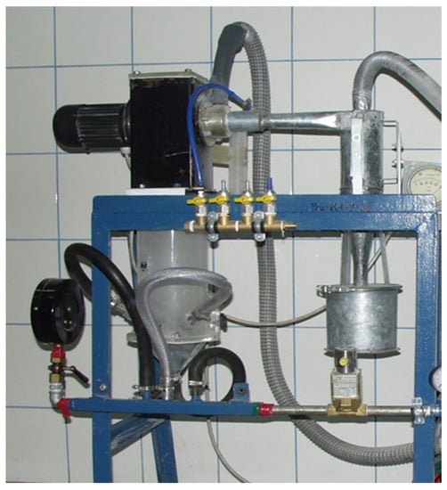 The system is located at the Faculty of Mechanical Engineering and Computer Science, Czestochowa University of Technology, Poland. Quartz sand was used in the study of the classification process. It is characterized by abrasion resistance; the shape of the sand particles is close to a ball with a density equal to 2638 kg/m3, and it corresponds to materials that are the most often applied in the processing industry of mineral raw materials. Low transient humidity is also an important feature.