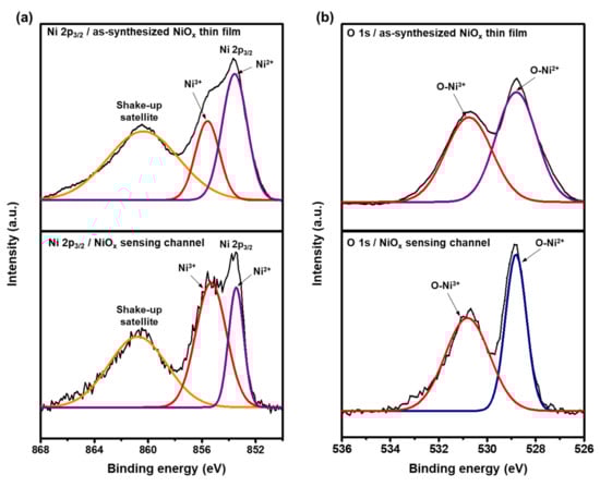 - Uhlenbrock, S.; Scharfschwerdt, C.; Neumann, M.; Illing, G.; Freund, H.-J. The influence of defects on the Ni 2p and O 1s XPS of NiO. J. Phys. Condens. Matter 1992, 4, 7973–7978. [Google Scholar] [CrossRef]