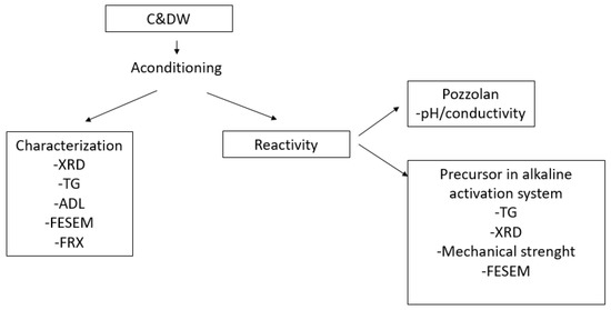 Calcium hydroxide (Ca(OH)2, 96% purity, supplied by Panreac Química SLU) was used to study the pozzolanic reactivity of C&DW following the evaluation method proposed by Tashima et al. [17].