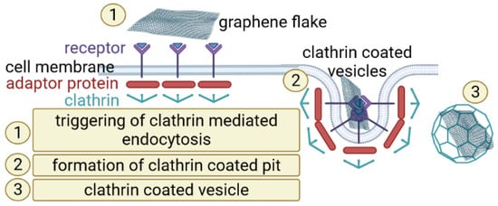 A scheme of clathrin-mediated graphene endocytosis. Composed with BioRender [21].