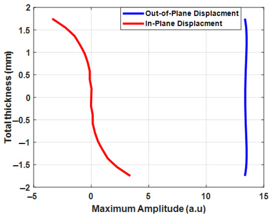 Through-thickness displacements and the maximum amplitude of the mode in the 3.5 mm-thick CFRP plate.