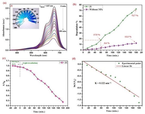 - Chauhan, A.; Verma, R.; Kumari, S.; Sharma, A.; Shandilya, P.; Li, X.; Batoo, K.M.; Imran, A.; Kulshrestha, S.; Kumar, R. Photocatalytic dye degradation and antimicrobial activities of Pure and Ag-doped ZnO using Cannabis sativa leaf extract. Sci. Rep. 2020, 10, 7881. [Google Scholar] [CrossRef]