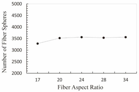 The variation of total fiber spheres number with fiber’s aspect ratio at the optimum fiber number.
