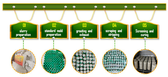 Step 4: Scraping and stripping. The slurry was scraped flat with a scraper after it had initially been set, then left to stand for 24 h. Then the CTB samples had a certain strength and could remain independent, and the samples were demolded.