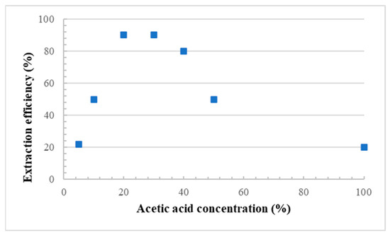 Corn starch extraction efficiency as a function of acetic acid concentration.