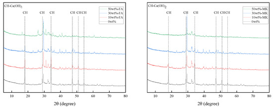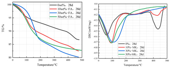 3.4. Effects of Fly Ash and Metakaolin on Ca(OH)2 in Cement Paste