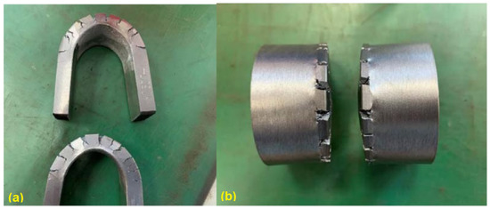 Cracks after side bending tests: test sample (a) and cracks (b).