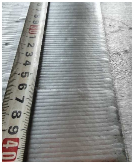 Manual Ar-protected TIG welding was performed with the Fe-10Cr-4Al-RE weld wire in its original size, being equal to 1.2 mm in diameter. The thickness of the welding layer is around 3 mm, consisting of three sub-layers, as shown in Figure 2. The welding parameters are listed in Table 4. As shown in Figure 2, the welded surface is fairly rough and twisted, which was considered to be mainly caused by the significant melting and cooling shrinkage incurred by the high welding temperature.