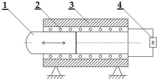 An application of the magnetic field with a free core: 1—a solenoid, 2—a coil, 3—a core, and 4—an electric circuit.