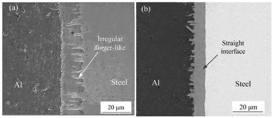 - Rong, J.; Kang, Z.; Chen, S.; Yang, D.; Huang, J.; Yang, J. Growth kinetics and thickness prediction of interfacial intermetallic compounds between solid steel and molten aluminum based on thermophysical simulation in a few seconds. Mater. Charact. 2017, 132, 413–421. [Google Scholar] [CrossRef]
