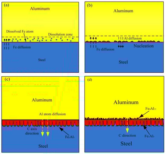 Chicago/Turabian StyleYu, Xiaoquan, Jiankang Huang, Tao Yang, and Ding Fan. 2022. "The Growth Behavior for Intermetallic Compounds at the Interface of Aluminum-Steel Weld Joint" Materials 15, no. 10: 3563. https://doi.org/10.3390/ma15103563