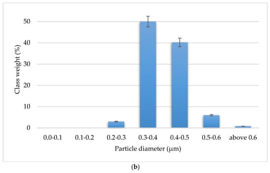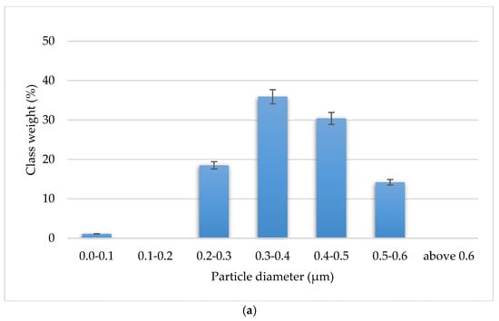 Diamond, manufactured by Luoyang Qiming Superhard Material Co., Ltd. (Luoyang, China), with the following gradations (designated by the manufacturer), was used for the study: 2.5–5 μm, 8–10 μm, and 16–20 μm. SEM images of individual diamond powders are presented in Figure 2. Verification of the diamond grain size was carried out with the use of laser diffraction. A Mastersizer particle size analyzer (Malvern Panalytical, Malvern, UK) was used for the tests. Figure 2 presents test results, which confirmed the size range given by the manufacturer. It is worth noting that powders with smaller diamond diameters: 8–10 μm and 2.5–5 μm, had a higher tendency to form agglomerates. Therefore, the particle size distribution assumes a bimodal character.