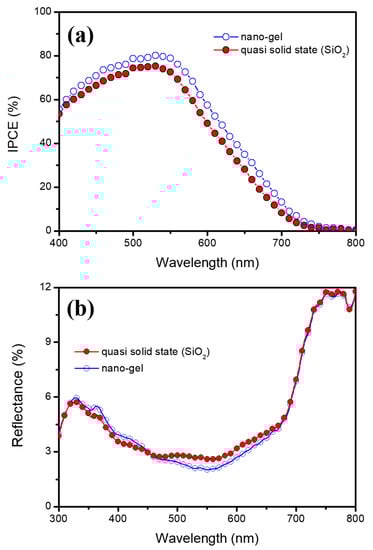 - Yoon, I.-N.; Song, H.-K.; Won, J.; Kang, Y.S. Shape Dependence of SiO2 Nanomaterials in a Quasi-Solid Electrolyte for Application in Dye-Sensitized Solar Cells. J. Phys. Chem. C 2014, 118, 3918. [Google Scholar] [CrossRef]