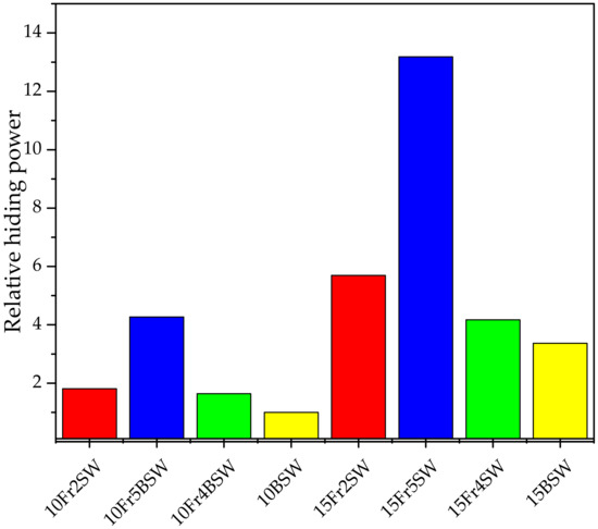 Relative hiding power of the PLA/DE composites.