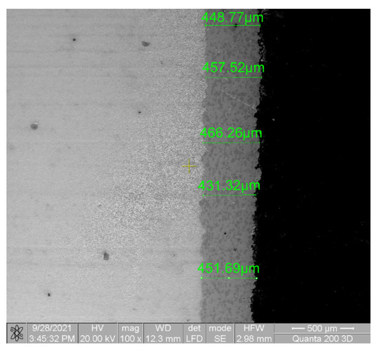 SEM image with cross-section at the interface between the base and the coated materials.