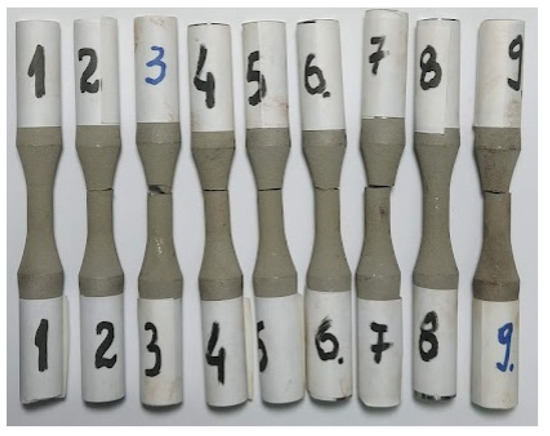 Samples after loading by alternate-symmetric fatigue tests.