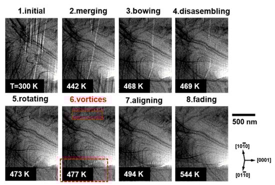 Sequential BF-TEM images of the Z-type hexagonal ferrite via in situ heating.