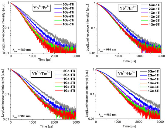 Luminescence decay curves for co-doped titanate–germanate glasses (λexc = 980 nm).