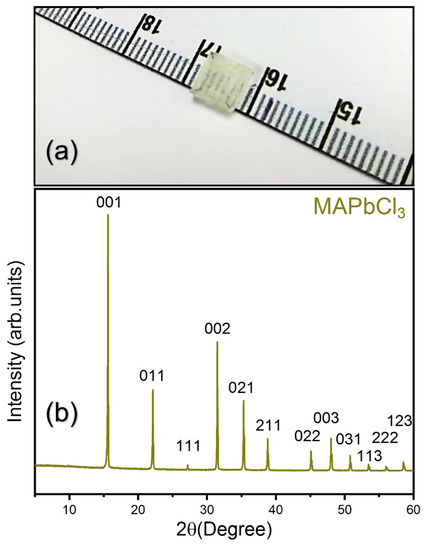 2 (0.01 M) were dissolved in DMSO (10 mL) by stirring at 60 °C. After complete dissolution, the solution was filtered through a 0.22 µm syringe filter into a crystallization dish. The dish was covered with aluminum foil and left undisturbed for 1–2 days at a constant temperature of 100 °C. After 1–2 days, transparent MAPbCl