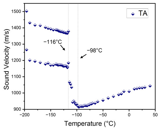 26], which is much larger than the other two results, including the present study. The sound velocity of the TA mode is shown in