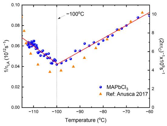 Table 2. This kind of critical slowing-down behavior indicates that the nature of the phase transition is of an order–disorder type; thus, the relaxation time increases upon approaching the phase transition point due to the growing volume (or correlation length) of the correlated MA cations.