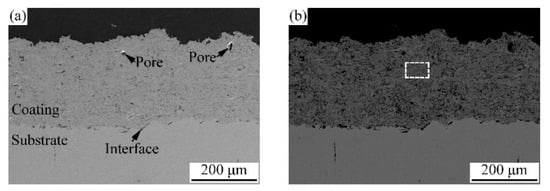 Cross-sectional microstructural images of as sprayed (a–c) and heat-treated (d–f) coatings [81].