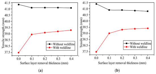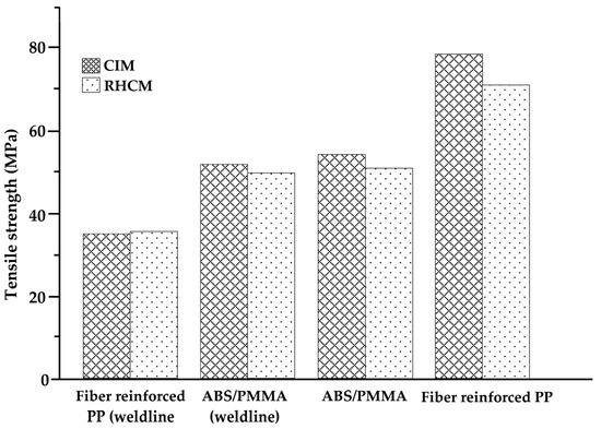 - Wang, G.; Zhao, G.; Wang, X. Effects of cavity surface temperature on mechanical properties of specimens with and without a weld line in rapid heat cycle molding. Mater. Des. 2013, 46, 457–472. [Google Scholar] [CrossRef]