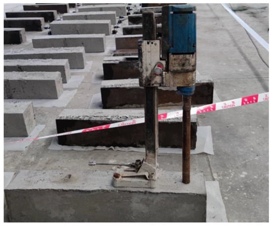 The concrete core samples thus extracted were first crushed and then screened to have concrete particles collected. The diameter of these concrete particles ranged from 2.5 mm to 5 mm. The acetone was used to prevent the hydration of concrete, and the vacuum dryer was applied to the dry samples. At last, the AutoPoreIV9510 device was employed to test the concrete porosity. Figure 5 shows the schematic diagram of the core sampling test.