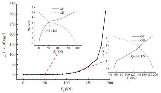 From this, the GFk-Fj curve can be obtained, and then the GBk-F curve can be formed by applying the same process to it in reverse. The two curves can intersect at the mutation point of the Ej-Fj curve, thus generating the identification structure stress state criteria for the transition points.