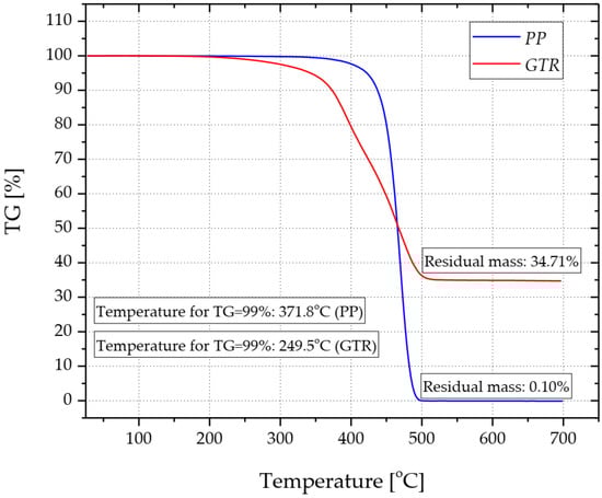 Thermal stability of PP and GTR determined by TG 209 Libra (Netzsch, Selb, Germany).