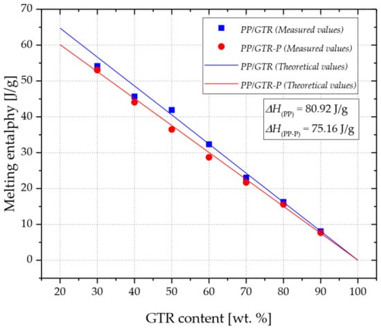 Theoretical and measured values of melting enthalpy of PP/GTR and PP/GTR-P.
