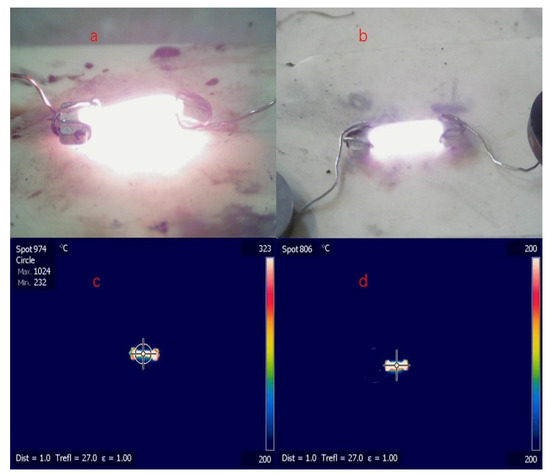 Digital camera: (a) 0.3Li, AC, 0.8-A maximum current; (b) 0.3Li, DC, 1-A maximum current; thermal infrared imager: (c) 0.3Li, AC, 0.8-A maximum current; (d) 0.3Li, DC, 1-A maximum current.
