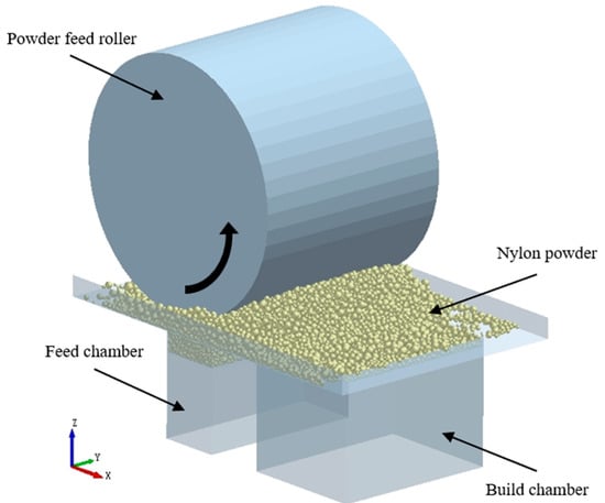 Selective laser sintering (SLS) is one of the typical additive manufacturing processes, which creates objects via scanning and layer-by-layer sintering. As a novel technology used for the design and manufacturing of complex shapes and structures, SLS is implemented a fast rate for automobile, shipbuilding, aerospace, and medical applications [,]. The laying of a flat, uniform, and high-density powder bed is the aim when preparing the molded parts to ensure good performance [,]. The size accuracy and mechanical properties of the sintered parts are directly affected by the powder laying quality, which is closely related to the powder flow characteristics and powder laying process parameters [].
