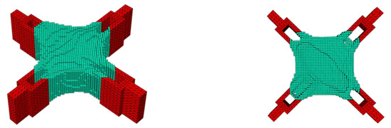 When the BESO algorithm was combined with the finite element software, in order to ensure the two-way addition and deletion of elements, the deleted and retained elements were divided into two material sets: set-1 and set-2, respectively. Therefore, the part of the unit set that needed to be deleted was still retained in the final optimization result model. The method used in this paper needed to extract the optimized results from the INP file after optimization.