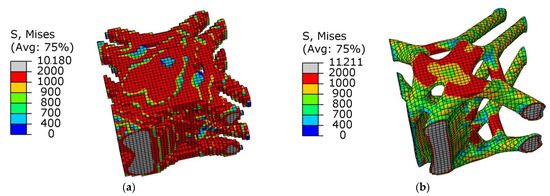 Stress cloud diagram in the design domain of optimized joints under combined conditions: (a) BESO; (b) SIMP.