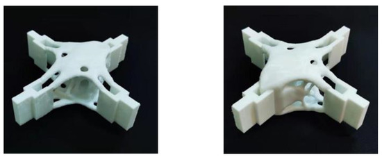 In this study, related forming experiments were carried out using the optimized results. The STL format file of the smoothed model was exported from Rhino and loaded into the software supporting the additive manufacturing machine for adjustment of the printing process parameters. The support methods were usually column-shaped support and tree-shaped support. Compared with column-shaped support, the tree-shaped support can save material and provide stronger support. In this study, some 4 mm diameter tree supports were added to support the printing of some suspended parts. The printing process used in this study was the FDM fused deposition manufacturing printing technology. In the research on the properties of PLA-printed parts, Sohrabian and Vaseghi [12] et al. carried out detailed experiments and finite element analysis of a scaffold architecture printed in PLA [12]. The mechanical properties of the PLA materials were good, and could guarantee good manufacturing accuracy. Therefore, it was very suitable as the manufacturing material for this model. The parameters are shown in Table 4.