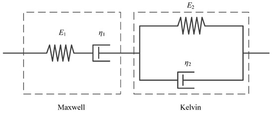 In this study, the Burgers creep model (Figure 6, Equation (5)) was adopted to describe the creep phenomenon of the different gradations of CGS and the creep compliance J(t) can be obtained by fitting the tested creep curves: