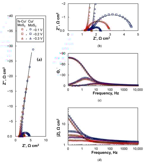 | Cu/MoS2 | Electrodeposition | 58.3 | −193 | This work |