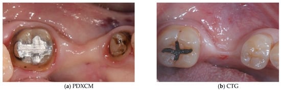 (a,b) Presurgical image of clinical case treated with PDXCM (right) and CTG (left).