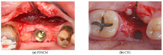 (a,b) The PDXCM is sutured to periosteum (right) and CTG is sutured to periosteum (left).