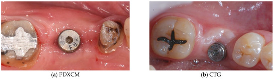 Recently, collagen-based matrices derived from porcine dermis (PDXCMs) have been introduced in dentistry as a substitute for CTG in peri-implant plastic surgery. Due to the preservation of their mechanical stability these collagen matrices allow cells adhesion, and proliferation and blood vessel in-growth [34,35], developing into a fully functional tissue [36,37].