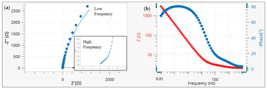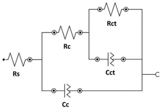 One of the key aspects of this technique as a tool to research the electrical and electrochemical properties of systems is the direct relationship between the real behavior of a system and that of a circuit made up of a set discrete component of electrical components, called an equivalent circuit. The most accurate circuit will be the one with the fewest possible time constants, which would provide a clear physical meaning [32]. Nyquist and Bode diagrams are obtained with their respective adjustments through the equivalent circuit to determine the values of each parameter that make up the system.