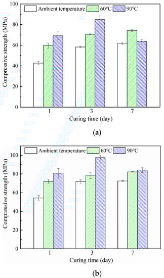 - Heat curing at an appropriate temperature (such as 60 °C) can significantly speed up the process of geopolymerization and enhance the pore-filling effect of the gel. This leads to a high mechanical strength of the HMGC. However, long-term heat curing under too-high temperature (such as 90 °C, 7 days) would coarsen the pores and cause micro-defects in the gel phase of the HMGC due to chemical shrinkage, thus reducing the mechanical performance of the HMGC.