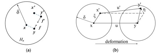 As shown in Figure 1b, ξ and η are the relative position vector and relative displacement vector of the points x and x′, respectively.