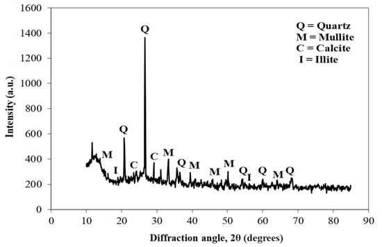Coal ash generated by thermal power plants is largely consumed in the construction industry, in various countries such as China, India, the United States (US), and the European Union (EU), among others. It is estimated that around 86%, 66%, 51%, and 35% of coal ash is used in the construction industries of China, India, the US, and the EU, respectively []. A great deal of published research is available on the utilization of coal ash/fly ash in the construction industry, especially in concrete [,,]. The most common areas of applications of coal ash in construction include the production of high-strength concrete [], as a base material for roads [], waste stabilization [], clinker formation [], and, recently, in the production of geopolymer concrete [], bricks, and blocks [,]. The utilization of coal ash for the production of new building units with reliable and quantifiable mechanical properties offers a positive impact on the environment by conservation of natural resources used for brick manufacturing []. Furthermore, coal ash is also a multifaceted material, containing around 188 mineral groups and 316 individual minerals []. Metallic oxides were the major constituents with unburnt carbon contents. Usually, the principal oxides are in the following order: SiO2 > Al2O3 > Fe2O3 > CaO > MgO > K2O []. One of the major areas for the consumption of coal ash in construction industries is in the production of bricks incorporating coal ash.
