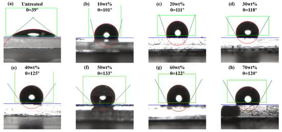 - The effect of the fluorinated monomer concentration on the hydrophobicity of the nano-emulsion was evaluated by measuring the contact angles on glass slides. Within a certain concentration range, the hydrophobicity of the nano-emulsion increased with the increase in fluorinated monomer concentration, and the optimum mass ratio of the fluorinated monomer was 50 wt%.