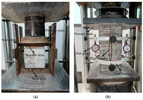 Mechanical property test setup: (a) Splitting tensile test; (b) Elastic modulus test.