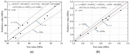 Multiple regression calculation of SFRRC strength: (a) Compressive strength; (b) Splitting tensile strength.