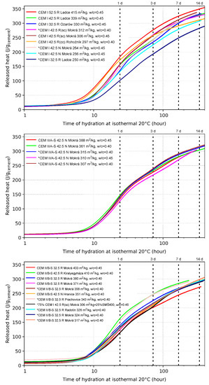 - Kiernożycki, W.; Błyszko, J. The Influence of Temperature on the Hydration Rate of Cements Based on Calorimetric Measurements. Materials 2021, 14, 3025. [Google Scholar] [CrossRef]